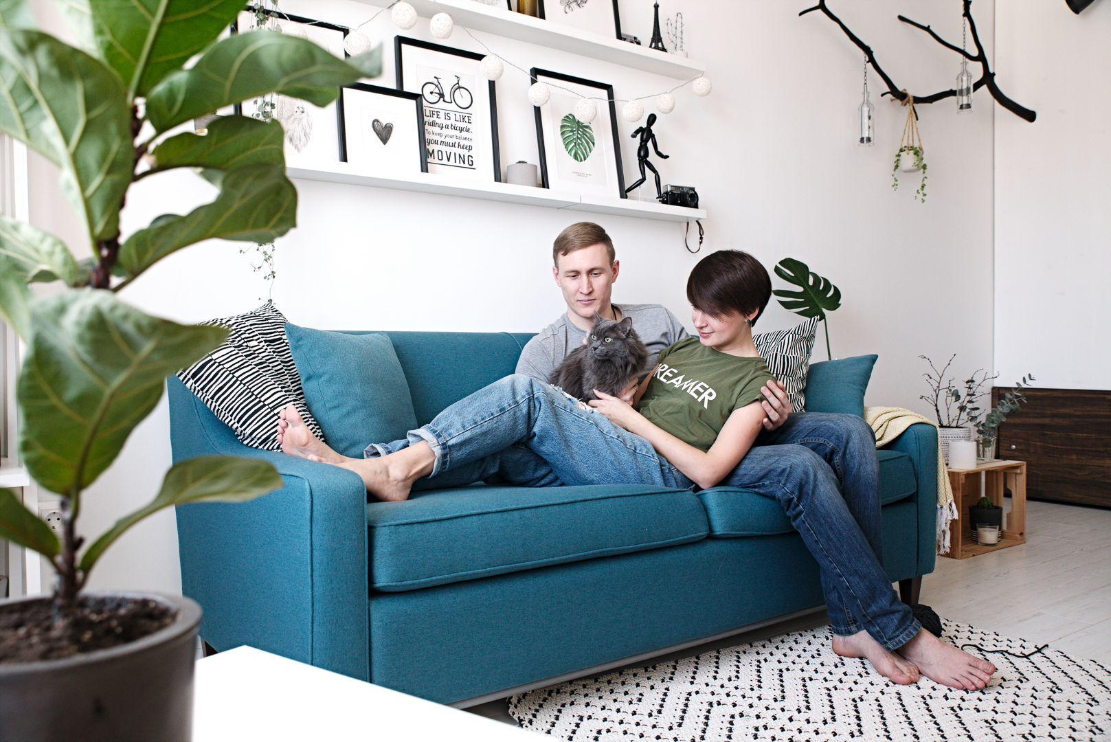 Первая квартира, которую я хочу показать – светлый и уютный дом Марины и Ивана Ичетовкиных в Кудрово (Санкт-Петербург). Марина и Иван переехали в нее два года назад и до сих пор обустраиваются. Как вы знаете, это бесконечный и приятный процесс 🙂 Здесь можно увидеть смешение разных брендов, и что самое крутое – очень много декора и даже мебели, которую хозяева сделали своими руками. И это несмотря на то, что у каждого работа пять дней в неделю. «Если есть желание, находится и время», — говорит Иван. И не только он ☺