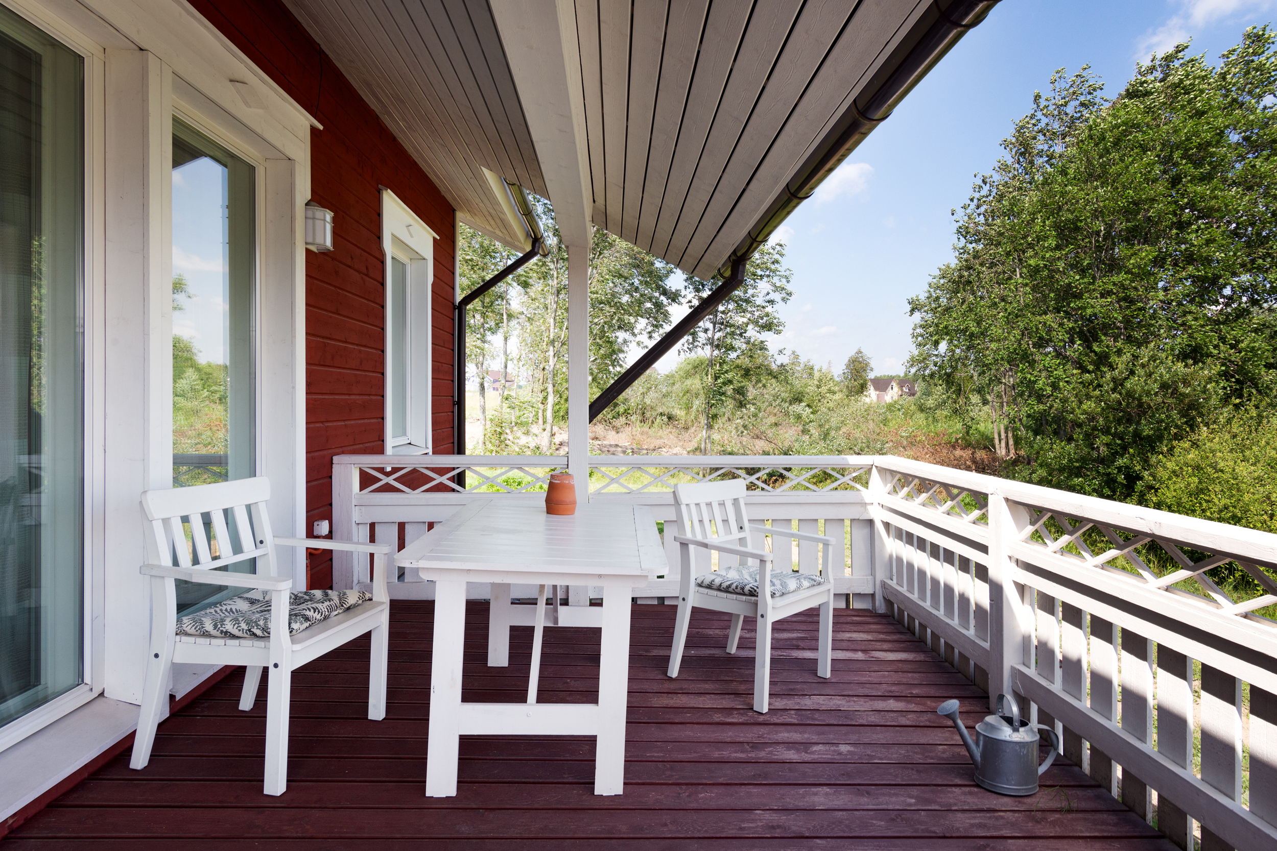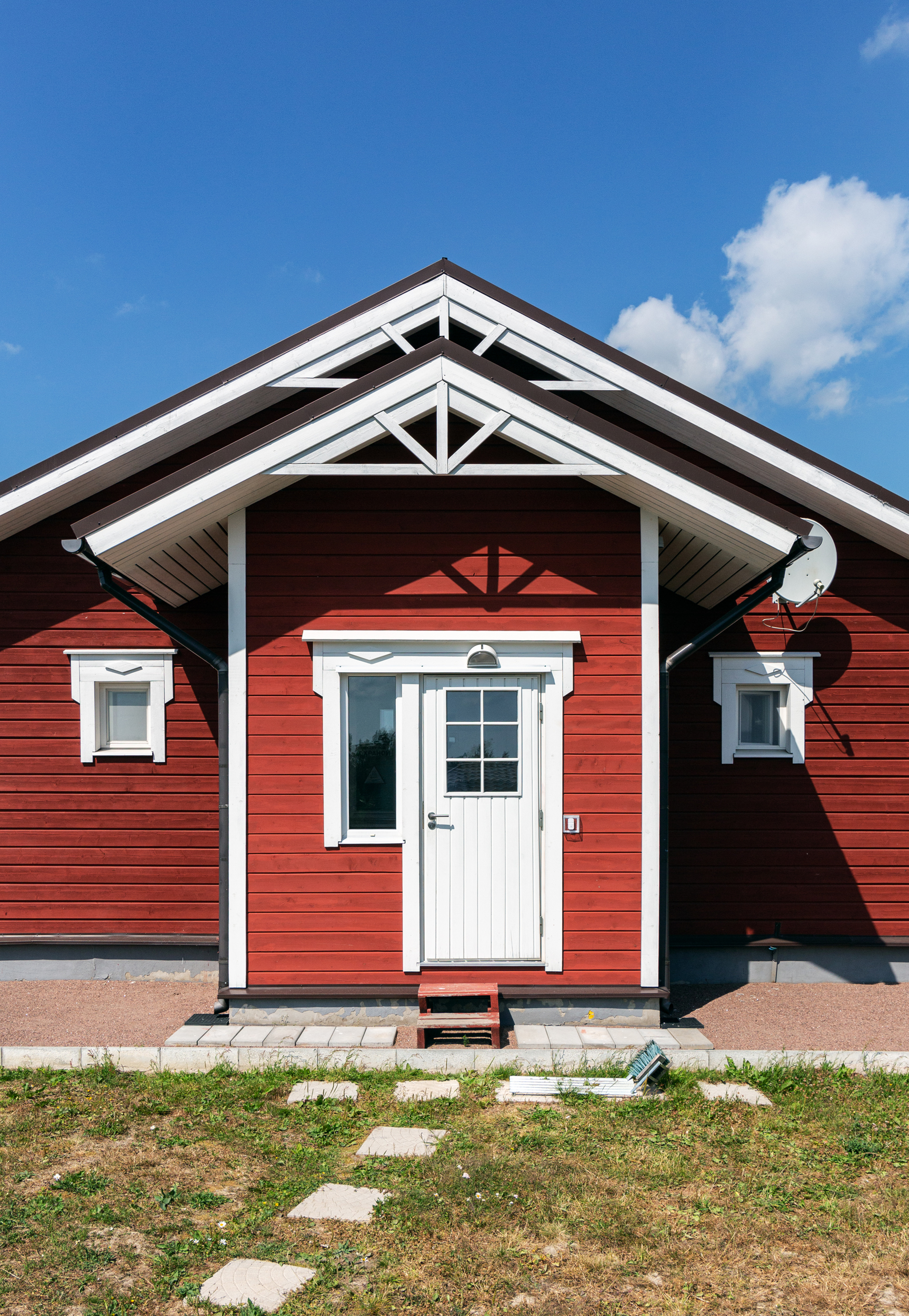 The house was sold as a frame, exterior paint was renewed in 2017. The paint I used is a special Finnish one, it is classic for Finnish and Swedish country houses. The color is called punamaali. You can paint only with it, another product can’t cover it.